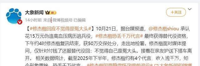 二 10月21日,台媒炸锅。 “修杰楷逃兵役被捕” 登上热搜榜首。