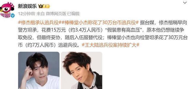 警方一查,发现牵出一整张艺人名单。 修杰楷,赫然在列。 调查显示,2016年他花了15万台币,买了一份“严重高血压”的假病历。 就这么轻轻松松躲过部队训练,转去当“替代役”—— 不住军营、能回家、任务轻,五个月就混完。